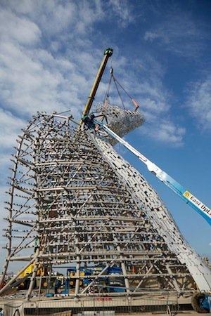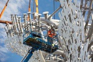 The Kelpies will tower a colossal 30 metres above the Forth & Clyde canal and will form a dramatic gateway at the eastern entrance. Sculpted by Andy Scott, The Kelpies are a monument to horse powered heritage across Central Scotland. The title and theme of The Kelpies as mystical water-borne equine creatures was inherited at the outset of the project, seven years ago. As you can see from the photos, Easi UpLifts supplied access platforms to help in the construction of the The Kelpies.