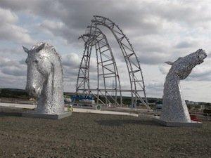 The Kelpies will tower a colossal 30 metres above the Forth & Clyde canal and will form a dramatic gateway at the eastern entrance. Sculpted by Andy Scott, The Kelpies are a monument to horse powered heritage across Central Scotland. The title and theme of The Kelpies as mystical water-borne equine creatures was inherited at the outset of the project, seven years ago. As you can see from the photos, Easi UpLifts supplied access platforms to help in the construction of the The Kelpies.