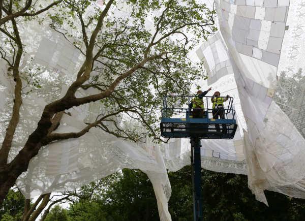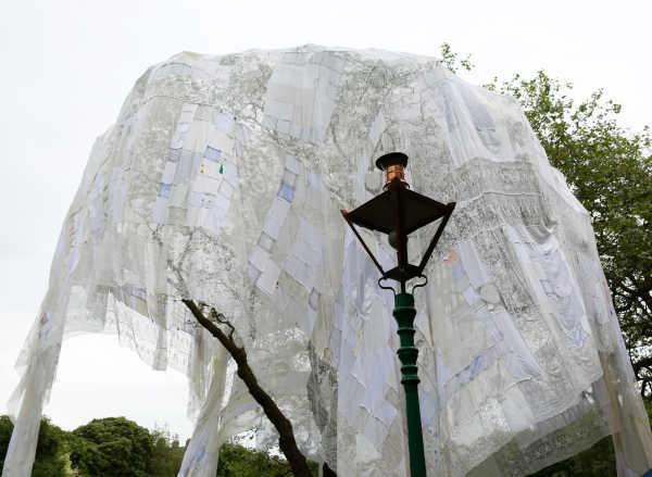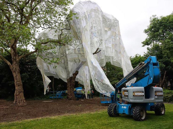 Yes , it’s The Touring Tama draped over a London Plane tree in Merrion Square park in Dublin by artist Miriam McConnons.